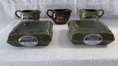 Vendo n. 2 posacenere in ceramica Whisky William Lawsons's, e n. 3 caraffe in ceramica. Misure posacenere verdi: altezza 6 cm, base 16 x 16 cm, larghezza sopra 18x18. Misure caraffa: altezza 9 cm, lunghezza con manico 18 cm, larghezza 8,5 cm. Prezzo 55 euro in blocco. Spedizioni in tutta Italia e in tutto il mondo!!! Per ogni info e dettagli contatto solo via telefono o Whatsapp al numero 349-0869294.