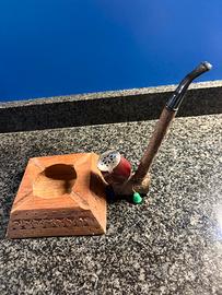 Posacenere e pipa 'tirolesi', scolpiti in legno, di Albert Comploj - Ortisei. Posacenere dim. cm. 13x13x5 peso 300 gr., pipa dim. in cm. 7x20x3 peso 65 gr.