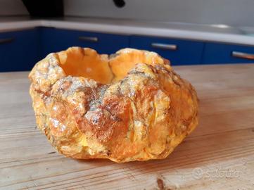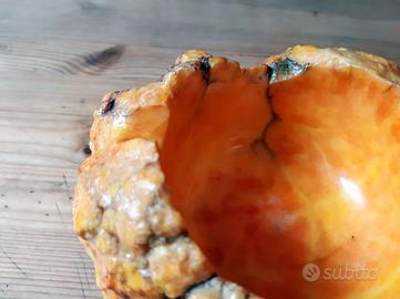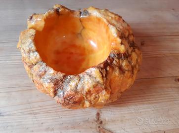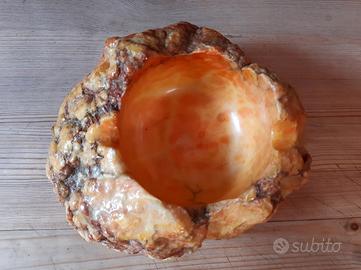 Bellissimo e molto massiccio portacenere in alabastro nei toni giallo scuro-marrone-arancione