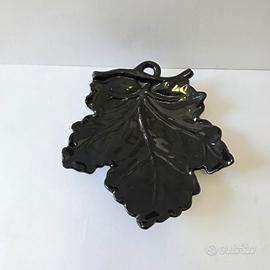 Posacenere in ceramica nera a forma di foglia, risalente al '900.