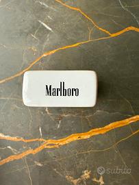 Posacenere pubblicitario originale Marlboro, realizzato in ceramica smaltata a forma di iconico pacchetto di sigarette “flip-top”.