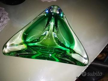 vendo stupendo posacenere verde vintage in vetro di Murano di forma triangolare anni '60-'70 senza rotture e in ottime condizioni dimensioni : 20 cm altezza 6 cm no spedizione consegna a mano
