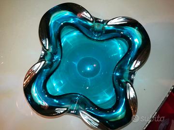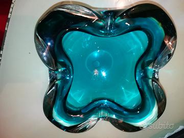 vendo stupendo posacenere di vetro Murano Quadrifoglio anni '70 di colore azzurro consegna a mano