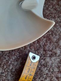 Posacenere, centrotavola o svuotatasche in ceramica smaltata, color panna con sfumature caramello sopra, arancione sotto. Prodotto probabilmente negli anni 70 a Torino, pezzo da collezione. Ottime condizioni, presenta solo due piccolissime scheggiature quasi impercettibili come riportato nelle ultime fotografie. Misure nelle fotografie