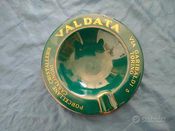 Bellissimo posacenere in ceramica verde con filettature e scritte oro. Gadget pubblicitario vintage della ditta Valdata di Torino, negozio di porcellane cristallerie e casalinghi. Articolo da collezione in perfette condizioni di conservazione, come da foto allegate. AL15121