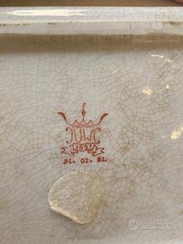 Posacenere vintage anni '20, ceramica e bronzo, dipinto a mano 20x17cm