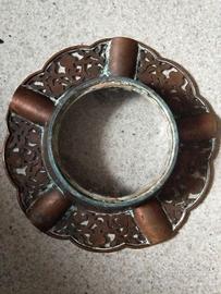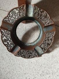 posacenere vintage con decorazioni floreali di metallo (forse rame)e con all'interno una base di vetro come da foto