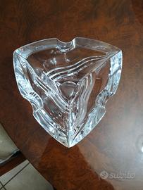 Elegante posacenere in cristallo con design geometrico sfaccettato a spicchi. Misura cm 16 x 7 h. Tutto come da foto.