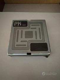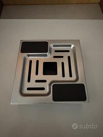 Raro posacenere da tavolo vintage PK, un autentico pezzo di design industriale italiano risalente probabilmente agli anni '70 o '80. Caratterizzato da un'estetica minimalista e funzionale, questo oggetto unisce la robustezza del metallo spazzolato a una base in plastica nera.