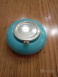 Simpatico posacenere portatile vintage Materiale: metallico smaltato colore azzurro. 6 Cm di diametro