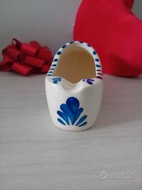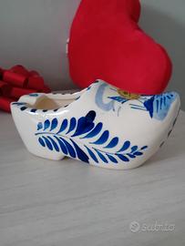 Vendo grazioso posacenere vintage a forma di tipico zoccolo olandese in ceramica "Delfts Blauw". L'oggetto è dipinto a mano (Handpainted) come riportato sia sul fondo che sull'adesivo originale ancora presente.