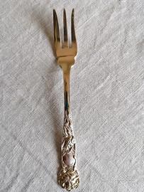 Antico set di posate in argento 1000 finemente cesellato composto da 12 forchettine e 6 cucchiaini da dessert.
