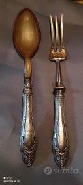Bellissime posate da insalata d ' epoca fine 1800, manico in argento sbalzato , cucchiaio in osso.