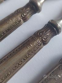 Set di posate Solingen vintage, composto da 6 coltelli e 6 forchette. Lame e rebbi in acciaio, manici marchiati "800". Il marchio 800 NON indica argento massiccio né valore da investimento. Il set è venduto esclusivamente a uso decorativo o collezionistico. Eventuali richieste di reso relative alla composizione delle posate non saranno accettate, poiché l’acquisto avviene per finalità decorative e non per il materiale. Presenti segni di usura, macchie, patina e ossidazioni tipiche del vintage. Le foto fanno parte integrante della descrizione. Procedendo all'acquisto viene accettato quanto scritto sopra. Vendita solo tramite spedizione con TuttoSubito.