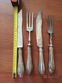 n°2 coppie di forchetta e coltello per affettare arrosto con manico in argento tutto per €40
