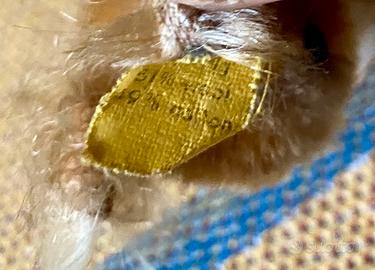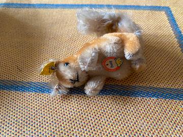Valuto le offerte Pezzo raro per collezionisti questo grazioso scoiattolo”Possy” prodotto dalla famosa casa tedesca Steiff negli anni ‘60 in questa piccola dimensione (cm 10 circa) È integro, completo dei marchi identificativi Steiff: bottone argentato con la scritta Steiff, etichetta gialla con il marchio Steiff e con il numero 4310 e targhetta con nome. Realizzato in mohair beige e marrone chiaro , occhi di plastica neri, ha ancora i suoi baffi (3 per lato) . La struttura della coda è un po’ fragile