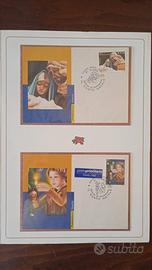 Bellissimo folder originale emesso da Poste Italiane Filatelia, anno di emissione 2002, dal titolo Natale 2002. Contiene all'interno 2 cartoline e una busta con timbri ufficiali delle Poste 1° giorno di emissione. Oggetto nuovo, non usato, non danneggiato, francobolli, cartoline e busta in condizioni perfette.
