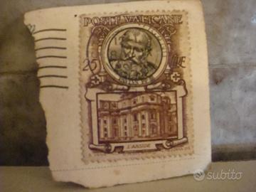 Poste Vaticane del 1959 da 25 Lire L'Abside Misure : 3 x 3.8 cm Ottime condizioni Come si vede chiaramente nella 3^ Fotografia si vede anche il lato anteriore del francobollo rappresentato da un'antica Cartolina del Vaticano. Prezzo: 9,99