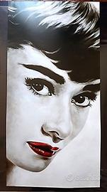 Bellissimo e raro manifesto d'arte che riproduce un'immagine della Hepburn disegnata da Frank Ritter dal titolo "Enchant" pubblicata nel 2006 da Top Art