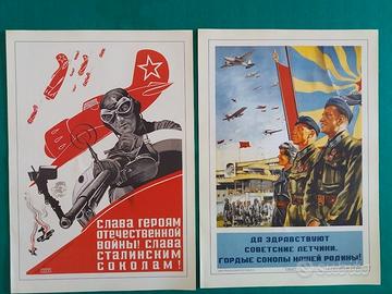 1 cartella di cartone contenente 20 riproduzioni di manifesti di propaganda Russa "Ali della Madrepatria" relativa all’aeronautica dell’Unione Sovietica. I manifesti sono tutti in ottime condizioni. La cartella presenta pieghe, e segni di usura. Insieme però privi di cartella cartella altri 21 poster sempre relativi a propaganda Unione Sovietica con diverse tipologie di argomenti,