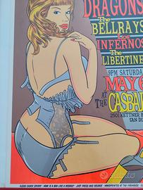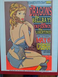 Serigrafia The Dragons /Bellrays/Libertines original concert Poster tiratura limitata autografato Chuck Sperry. Ottime condizioni Made in San Diego USA 2000