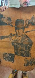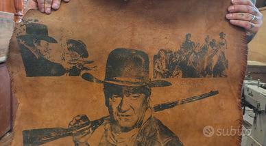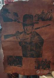 decorazione da parete in vera pelle con locandina di John Wayne misure 63cm x 84cm