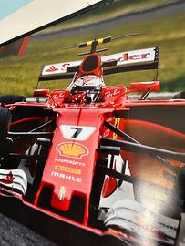 Vendo questo bellissimo poster per trasferimento. Il poster è in condizioni perfette, di dimensioni 104x70cm, ritrae il pilota Kimi Raikkonen nel circuito di Monza, a bordo della Ferrari del 2017.