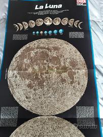 VINTAGE POSTER LA LUNA EPOCA IBM ITALIA MACCHIE DI VERDE SULL EQUATORE E SCRITTE SUL RETRO COME EVIDENZIATO DALLE FOTO 140 X 49,5 CM.