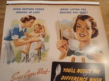 Bellissimo poster pubblicitario vintage di tè Lipton. Perfetto per collezionisti o amanti del vintage!