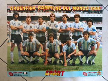 Poster maradona e dietro squadra argentina mondiali del 1986. Allegato Intrepido sport numero 28 del 15/7/1986. Dimensioni cm 46x cm 59.