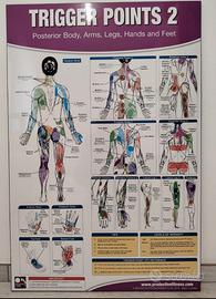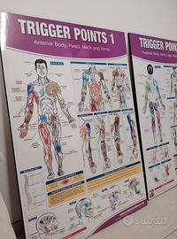 Vendo 2 poster didattici Trigger Points 1 e 2 (Produttive Fitness made in Canada) pari al nuovo, ideali per fisioterapia, osteopatia, massoterapia, palestra e studio medico. Illustrano i punti trigger e le zone di dolore riferito del corpo umano (anteriori e posteriori). Ottimo materiale per professionisti e studenti. Grandezza 61X91 cm