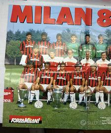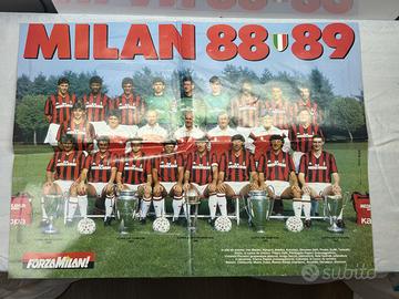 Poster vintage originale dedicato al AC Milan. Poster fronte/retro con: lato 1: Silvio Berlusconi – Il Presidente lato 2: squadra Milan 1988-1989 con giocatori storici come Van Basten, Gullit, Rijkaard, Maldini e Baresi. Condizioni: poster piegato come da origine segni normali del tempo nessuno strappo grave Ideale per collezionisti e tifosi rossoneri.