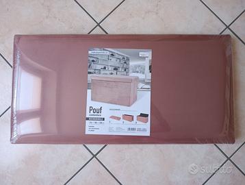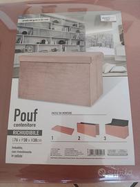 Vendo nuovo, nella confezione sigillata. Pouf contenitore richiudibile, imbottito con rivestimento in vellutino color rosa antico. Misure: L.76cm. x P. 38cm. x H. 38cm. Prezzo 28 euro, spedizione esclusa.