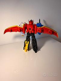 Vendo splendido Gosei Great Megazord originale Bandai, tratto dalla serie TV Power Rangers Megaforce (2013). Il robot è completo di tutti i suoi componenti e si trova in condizioni eccellenti, perfetto per collezionisti o per fare un regalo. Caratteristiche del set: Completamente trasformabile: Il Megazord si scompone nei 5 Zord individuali: Gosei Dragon (Drago), Gosei Phoenix (Fenice), Gosei Shark (Squalo), Gosei Tiger (Tigre) e Gosei Snake (Serpente). Accessori inclusi: È presente la Dragon Sword (spada), componente spesso mancante nei set usati. Extra: Includo 2 carte originali del gioco di carte collezionabili (Power Rangers Action Card Game) compatibili con il Gosei Morpher. Sistema Zord Builder: Compatibile con altri Zord della stessa linea per creare combinazioni personalizzate. Condizioni: Giocattolo usato ma tenuto con estrema cura (vedi foto). Agganci e articolazioni solidi e funzionanti. Plastiche lucide e colori vividi. Senza scatola originale.