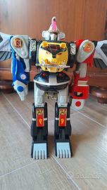 Ninja Mega Falconzord originale del 1995 (Mighty Morphin Power Rangers). Il lotto include il Ninja Megazord completo e il Falconzord bianco, che si aggancia sulla schiena per formare la configurazione finale vista nel film e nella serie.