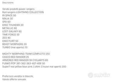 vendo collezione power rangers , info nelle foto