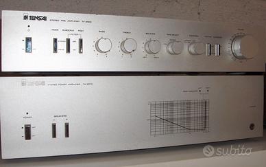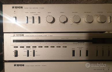 impianto stereo pre e finale e radio anni 80 -marca : TENSAI (akai) -mod.: preampli = TP 2500 -mod.: finale = TM 2570 (top serie) -mod.: radio = TT 3545 analogica/digitale -top della serie (soprannominato SUPERTEN) -potenza 70+70w rms -costruzione : Dual Mono, ottima -condizioni estetiche e funzionali buone -speakers A e B -radio digitale -suono potente -preferito contatto telefonico prezzo 400E 3396839615 fabio