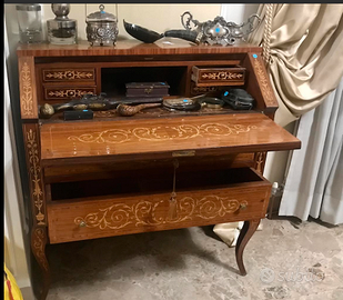 PREGIATA ribaltina/scrittoio/secretaire in stile Luigi XV, intarsiata con motivi floreali, realizzata con maestria artigianale con dettagli intricati e un design che riflette l'eleganza del periodo. Antica riconducibile ai primi del Novecento. Ideale per un ufficio classico o come complemento decorativo in un salotto. CONDIZIONI: ottimo stato conservativo ma essendo un articolo antico/vintage può presentare i lievi segni del tempo che ne attestano l'originalità e il fascino.