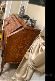 rappresenta un'elegante soluzione d'arredo che combina bellezza e funzionalità. Un mobile d'antiquariato caratterizzato da un'anta che si apre verso il basso per formare un piano di lavoro.