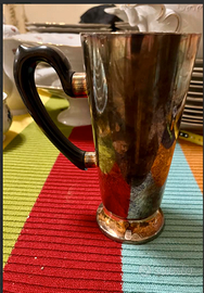 PREGIATO boccale INGLESE realizzato in EPNS (electro-plated nickel silver) ALPACA con manico in bachelite nera. Antico risalente anni 40, da COLLEZIONE o Idea REGALO.