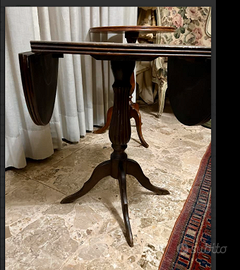 RAFFINATO e PREGIATO tavolino da caffè a ribalta pieghevole (allungabile con alette) ART DECO' con sostegno a trippiede, realizzato in mogano. Antico/Vintage riconducibile anni '20. CONDIZIONI: buono stato conservativo ma essendo un articolo antico/vintage può presentare i lievi segni del tempo che ne attestano l'originalità e il fascino. Proveniente da collezione privata Villa Veneta del '900.