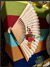 PREGIATO ventaglio Cinese Antico risalente ai primi 900 con stecche in bambù e pagina/pavese in carta decorata con motivi floreali dettagliati su uno sfondo color crema/beige. CONDIZIONI: ottimo stato conservativo ma essendo un articolo antico/vintage può presentare i lievi segni del tempo che ne attestano l'originalità e il fascino. Da COLLEZIONE o Idea Regalo