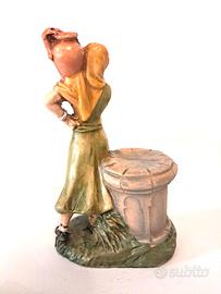 Stupenda statua raffigurante pastore donna con anfora in spalla, realizzata interamente in Italia in cartapesta, dipinta a mano ed adatta a presepi con statue di altezza 10 cm. Articolo nuovo quindi perfetto in ogni sua parte! Articolo di difficile reperibilità .