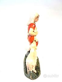 Stupenda statua raffigurante pastore donna con pecore, realizzata interamente in Italia in cartapesta, dipinta a mano ed adatta a presepi con statue di altezza 10 cm.