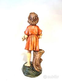 Stupenda statua raffigurante pastore ragazzo giovane con pecora in braccio, realizzata interamente in Italia in cartapesta, dipinta a mano ed adatta a presepi con statue di altezza 10 cm.