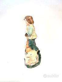 Stupenda statua raffigurante pastori con pecore che suonano, realizzata interamente in Italia in cartapesta, dipinta a mano ed adatta a presepi con statue di altezza 10 cm.