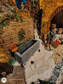 Creato con polistirolo estruso. Tutta l'illuminazione a led alimentati da un alimentazione da 12v. Ha una centralina con i comandi per le varie fasi di accensioni ad esclusione della fontana che è stata creata con un motorino da acquario. È il primo di una nuova serie che ho sperimentato quest'anno. Ho segnalato nuovo perché l'ho creato da zero con tutti particolari nuovi. I pastori non sono inclusi nell'offerta.