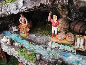 Vendo per cambio progetto,presepe Artigianale creato da me,compreso di 16 personaggi serie Landi,luci gia installate.