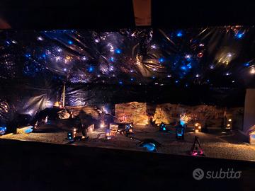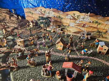 Presepe fatto a mano, curato nei minimi particolari. Dotato di ruscello acqua corrente funzionante con piccola pompa elettrica. Luci nel cielo e nelle 21 casette. Misure 205x115 h 65. Presenti diverse statuette dei personaggi, animali e oggetti decorativi non presenti Maria, Giuseppe e il bambino. Ritiro ad Imola. Per info contattatemi pure, Daniele
