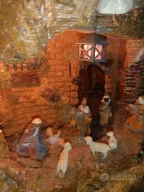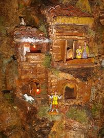 Presepe artigianale con sughero e statuine rigorosamente provenienti da san Gregorio armeno.